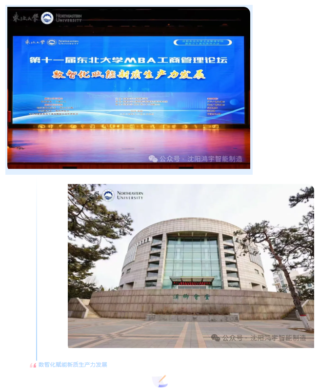 在数智化浪潮蓬勃发展的当下,沈阳鸿宇科技有限公司受邀参加了第十一届东北大学mba工商管理论坛,与高校及各界精英齐聚一堂,共同探讨 “数智化赋能新质生产力发展” 这一前沿主题。